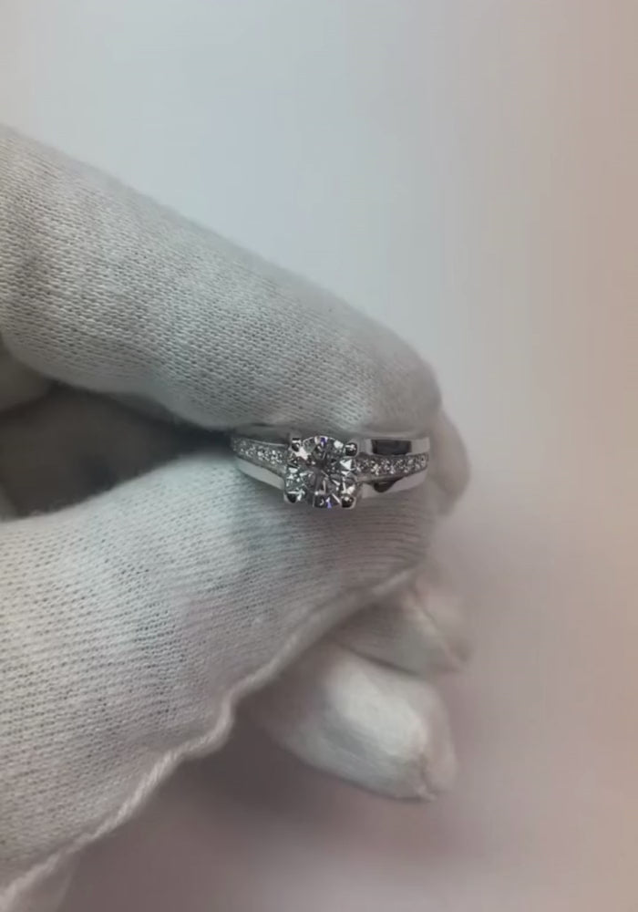 Spécifications de la pierre : Il y a un diamant au centre d'env. 1.01 carat (environ 6.4 mm de diamètre) & environ. 0.31 carat de petits diamants. Des diamants naturels extraits de la terre.