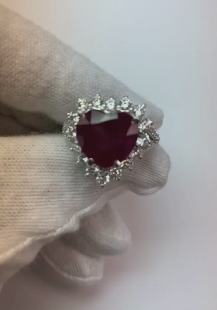 10.75 carats en forme de coeur rouge rubis Aaa avec bague en diamant