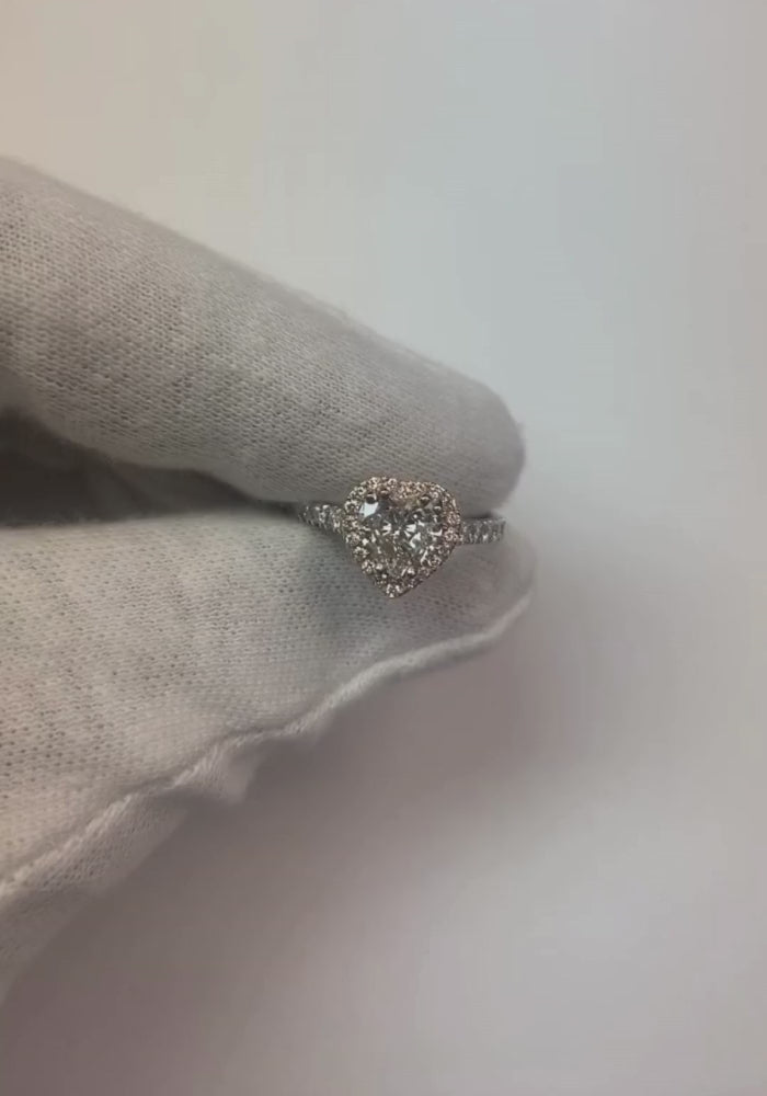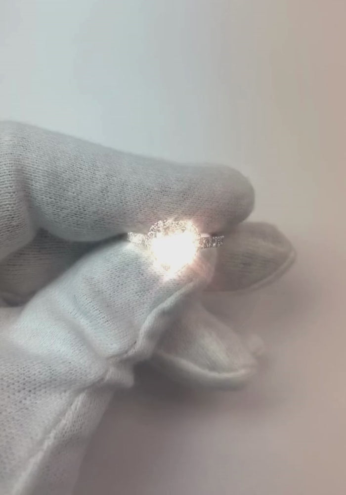 Spécifications de la pierre : Il y a un diamant central taille coeur d'env. 1.50 carat et env. 1 carat de petits diamants sur les côtés. Des diamants naturels extraits de la terre.