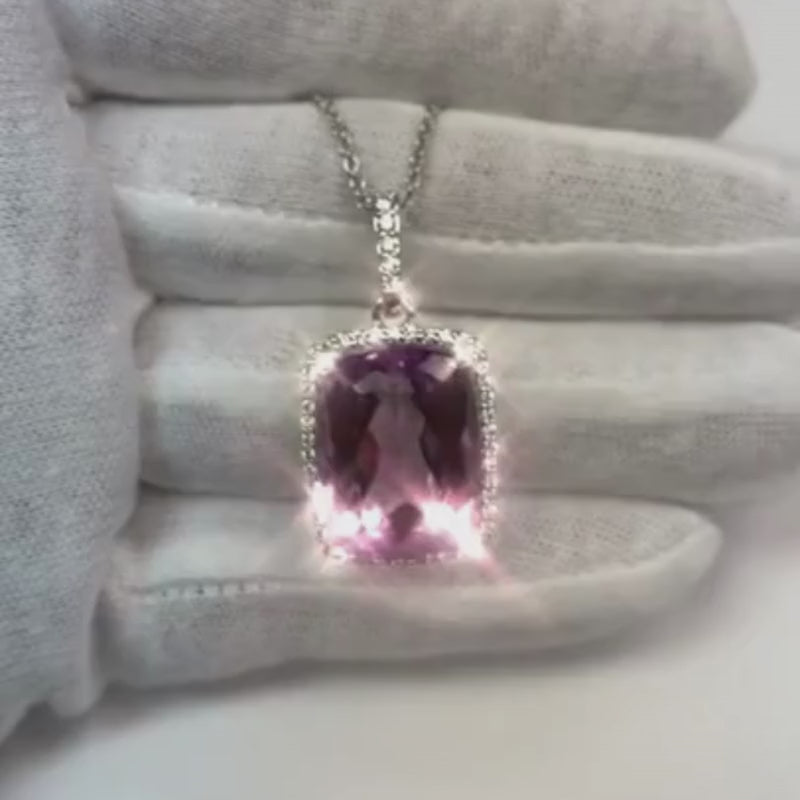 27 ct. Pendentif Kunzite Rose Avec Diamants Or Blanc