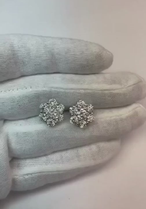 Spécifications de la pierre : Il y a un diamant d'env. 0,75 carats (env. dia 5,6 mm) et 6 diamants env. 0,25 carats chacun (env. Dia. 3,8 mm) sur le côté de chaque boucle d'oreille. Des diamants naturels extraits de la terre.
