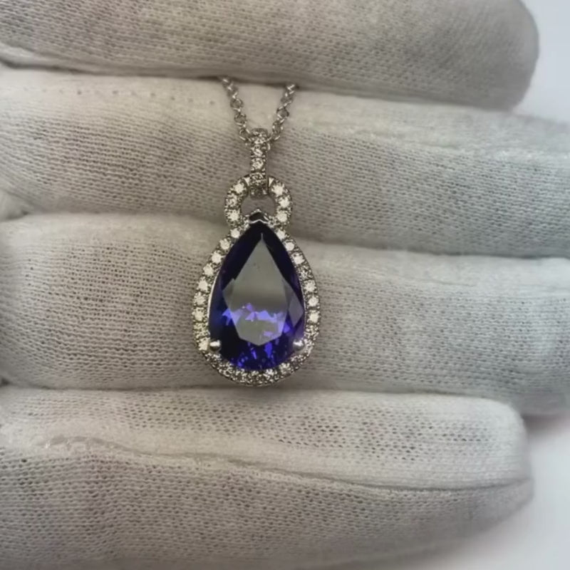 6.65 carats. Collier Pendentif 14K Poire Tanzanite Avec Diamants Ronds