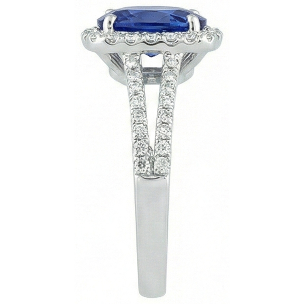 Spécifications de la pierre : Il y a un saphir bleu au centre d'env. 2.00 carats & environ. 1.25 carats plus petits diamants sur le côté. Pierres extraites de la terre naturelle.