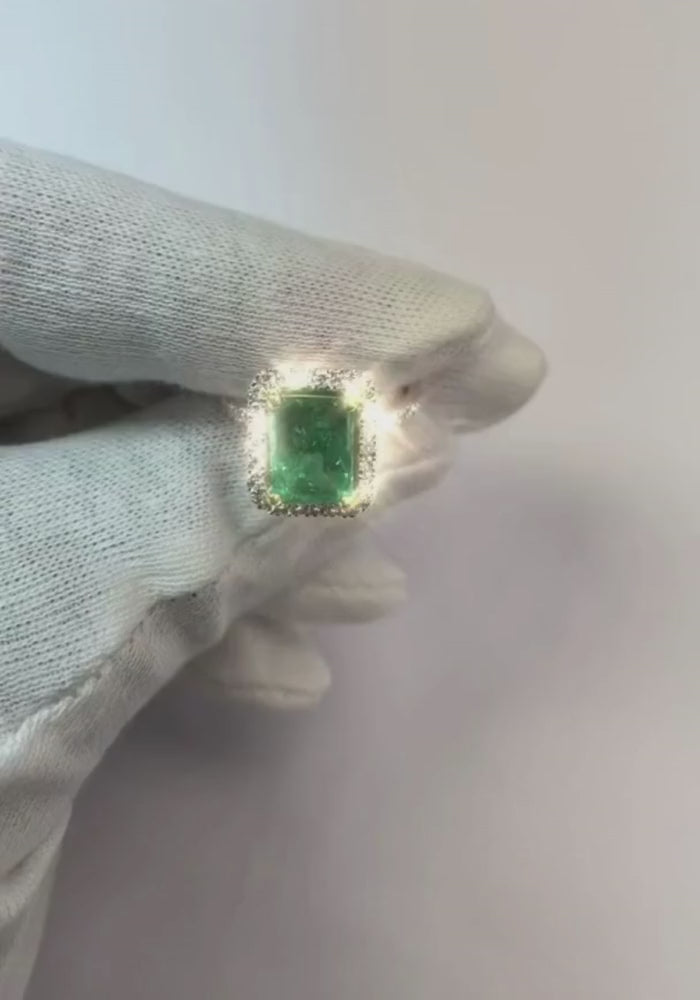 Bague De Fiançaille En Or Blanc à 3,55 carats De Diamants Émeraudes Vert Halo Colombiennes