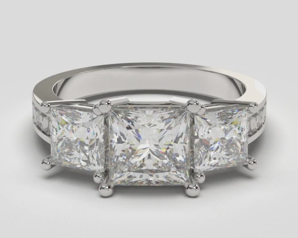 Bague de fiançailles 3 pierres diamant taille princesse 3.50 carats Nouveau