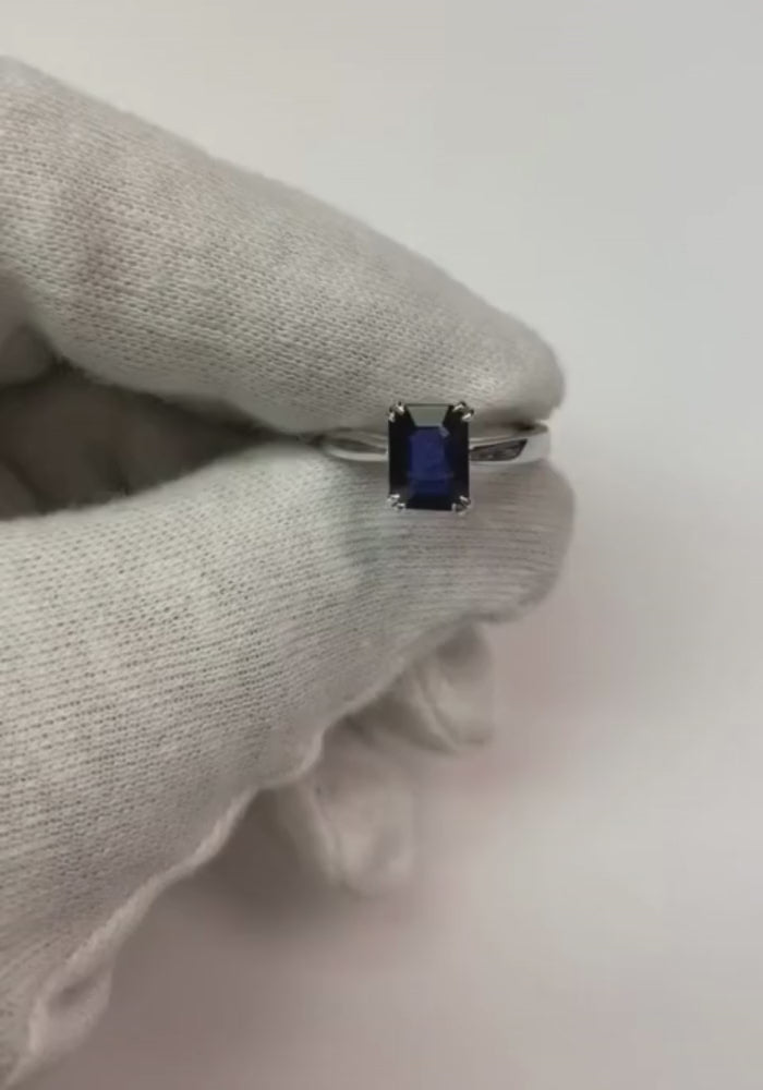 Stone Specifications : There is one Emerald Cut Sapphire approx. 2 carat (size approx. 8 x 6 mm). Natural Earth Mined Stone.