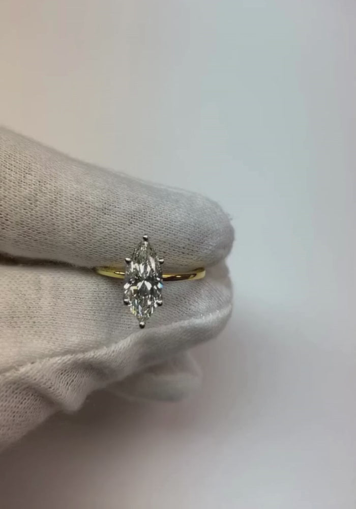 Bague de fiançailles solitaire diamant marquise 1.51 carats en or rose