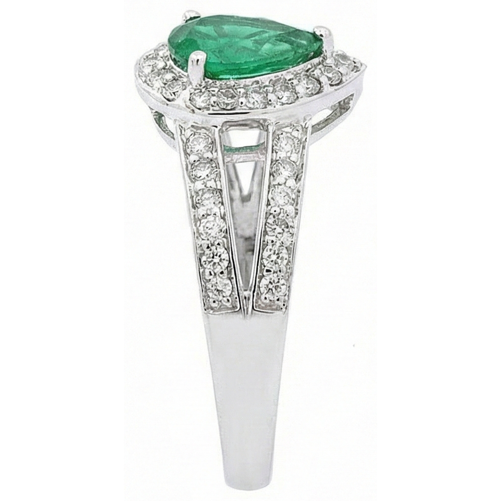 Bague de mariage 6 carats poire vert émeraude avec diamants or blanc 14K