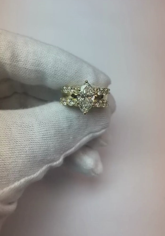 Bague de Mariage Marquise Diamant Bijoux de Mariée Or Jaune