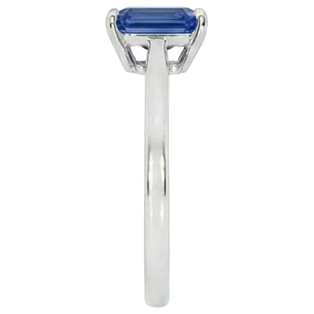 Bague Solitaire Saphir Bleu Naturel Sertie Griffe Emeraude 1.50 Carats