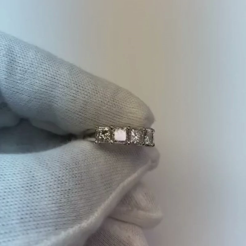 Bande d'éternité demi-éternité pour femme avec diamants taille princesse 2.50 carats en or blanc