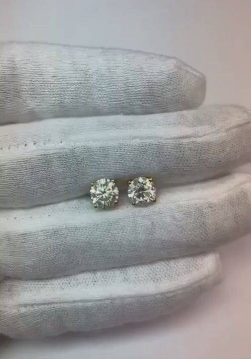 Boucles d'oreilles à diamants ronds solitaires de 3.10 cts en or blanc 14K