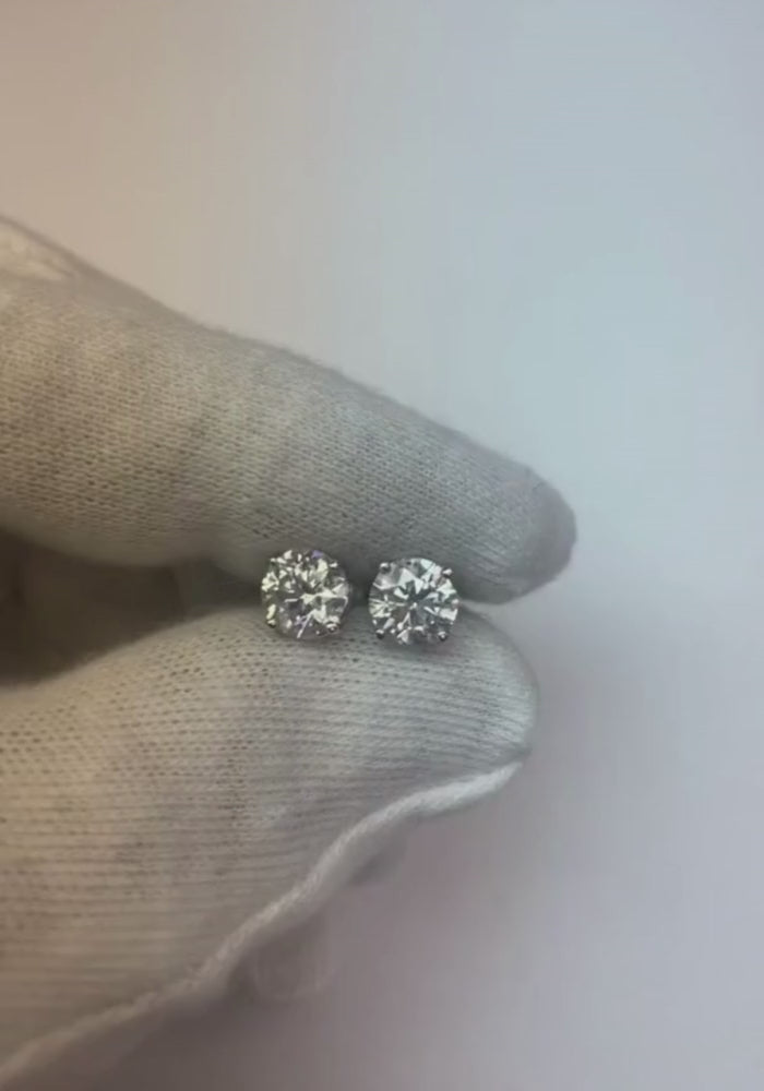 Boucles d'oreilles clous d'oreilles en or blanc avec diamants ronds de 2.30 cts. joaillerie fine