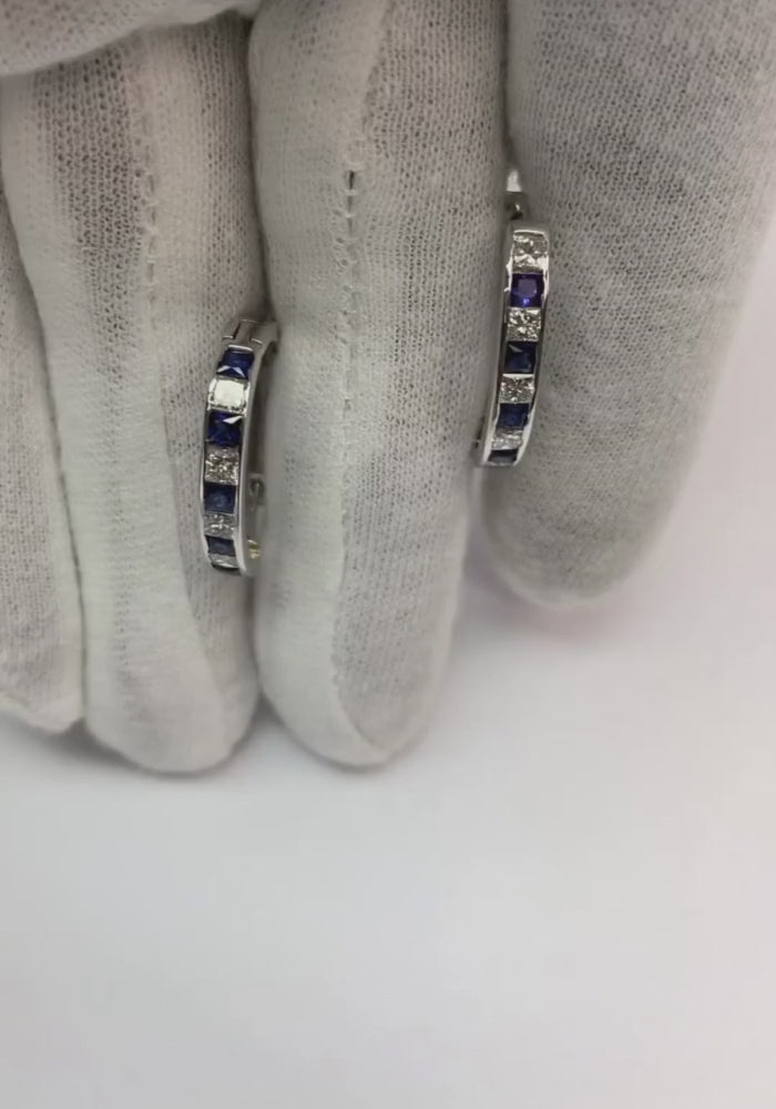 Spécifications de la pierre : Il y a env. 1.00 carat de diamants et env. 1.20 carat de saphirs dans chaque boucle d'oreille. Pierres naturelles extraites de la terre.