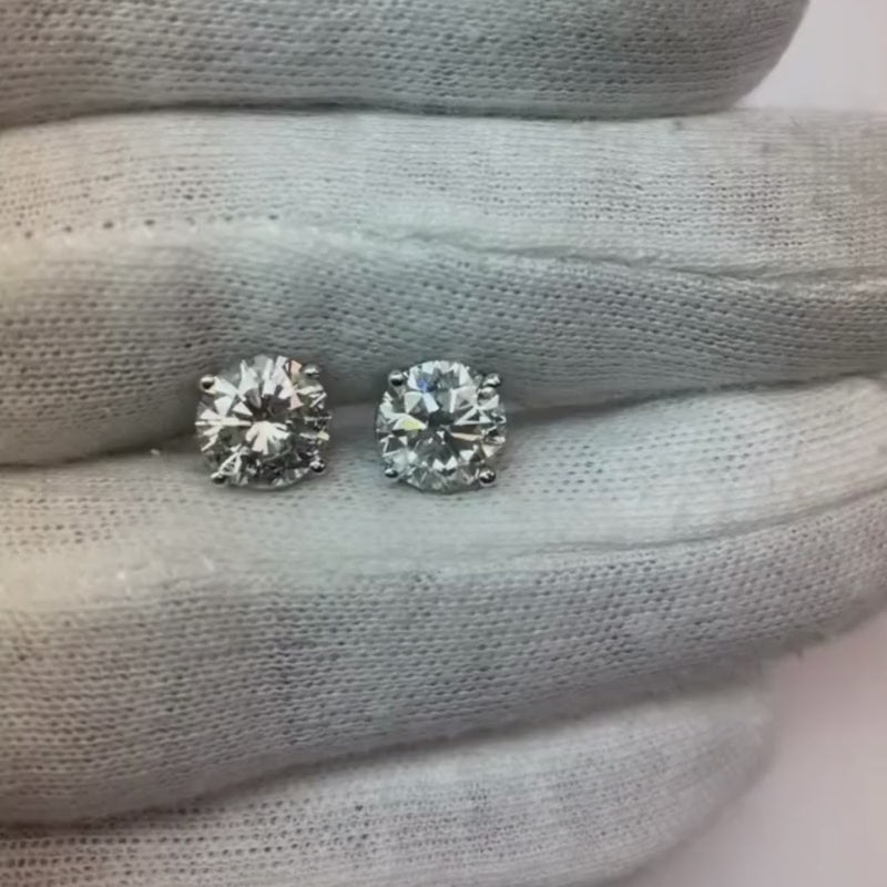 Boucles d'oreilles dames diamants étincelants ronds 4 carats or blanc 14K