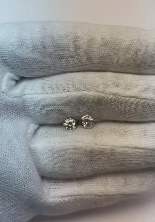 Boucles d'oreilles diamant Coupe Ronde sertie lunette 1 carat or blanc 14K