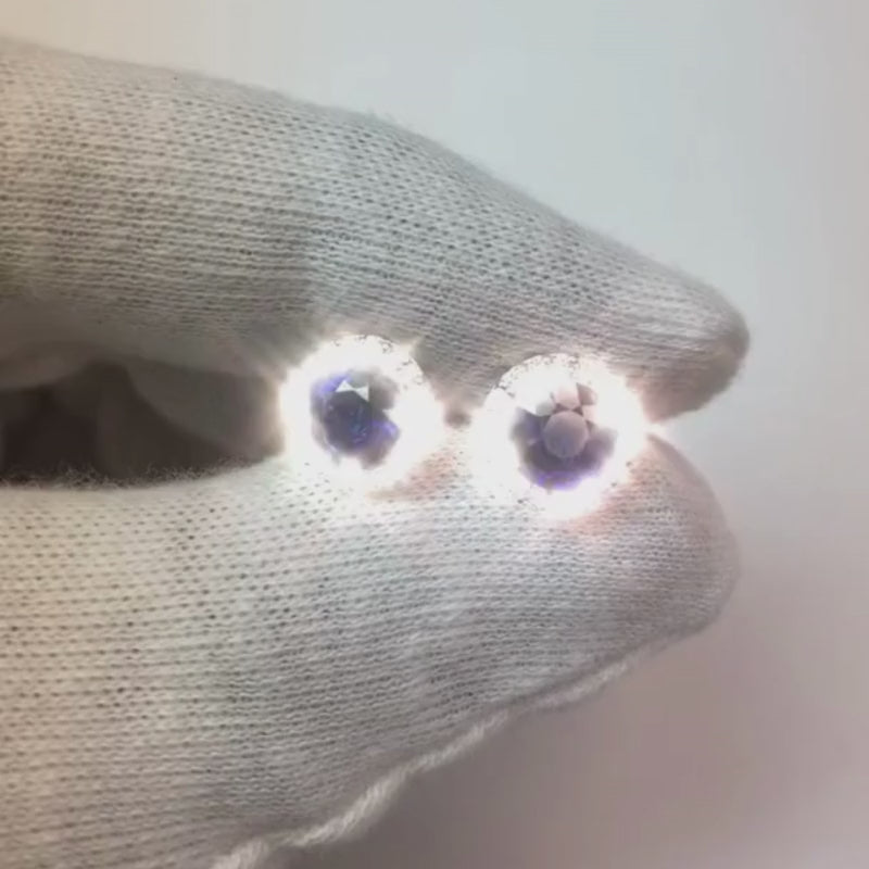 Spécifications de la pierre : Il y a deux bleus saphirs env. 0.75 carat chacun (diamètre env. 5.6 mm) et 32 diamants ronds env. 0.025 carat chacun (environ 1.7 mm de diamètre). Pierres naturelles extraites de la terre.