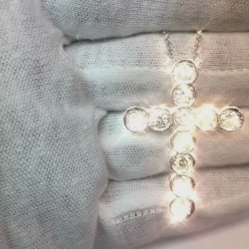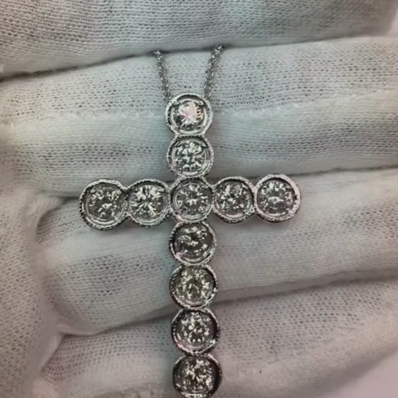 Collier Pendentif Croix Diamant Rond Millgrain 4 Carats WG 14K