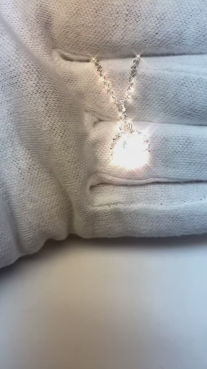 Détails de la pierre : Il y a un saphir taille ronde d'env. 1 carat (Env. Dia. 6 mm) et env. 1 carat de petits diamants dans le pendentif. Pierres extraites de la terre naturelle.