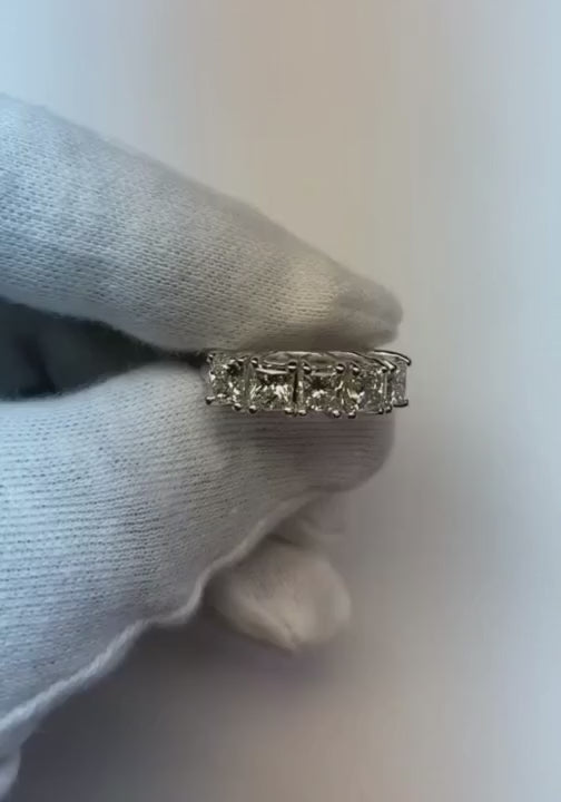 Spécifications de la pierre : Il y a cinq diamants Coupe Princesse d'environ 0,60 carat chacun (taille d'environ 4,5 x 4,5 mm) dans l'anneau. Des diamants naturels extraits de la terre.