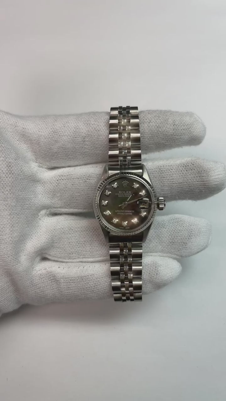 Montre pour femme Rolex acier inoxydable Jubilé Datejust avec cadran en diamant gris