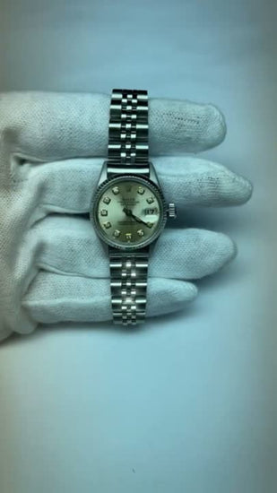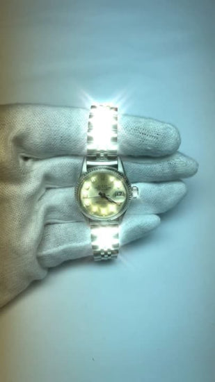 Rolex dame Datejust montre argent acier inoxydable jubilé bracelet lunette cannelée