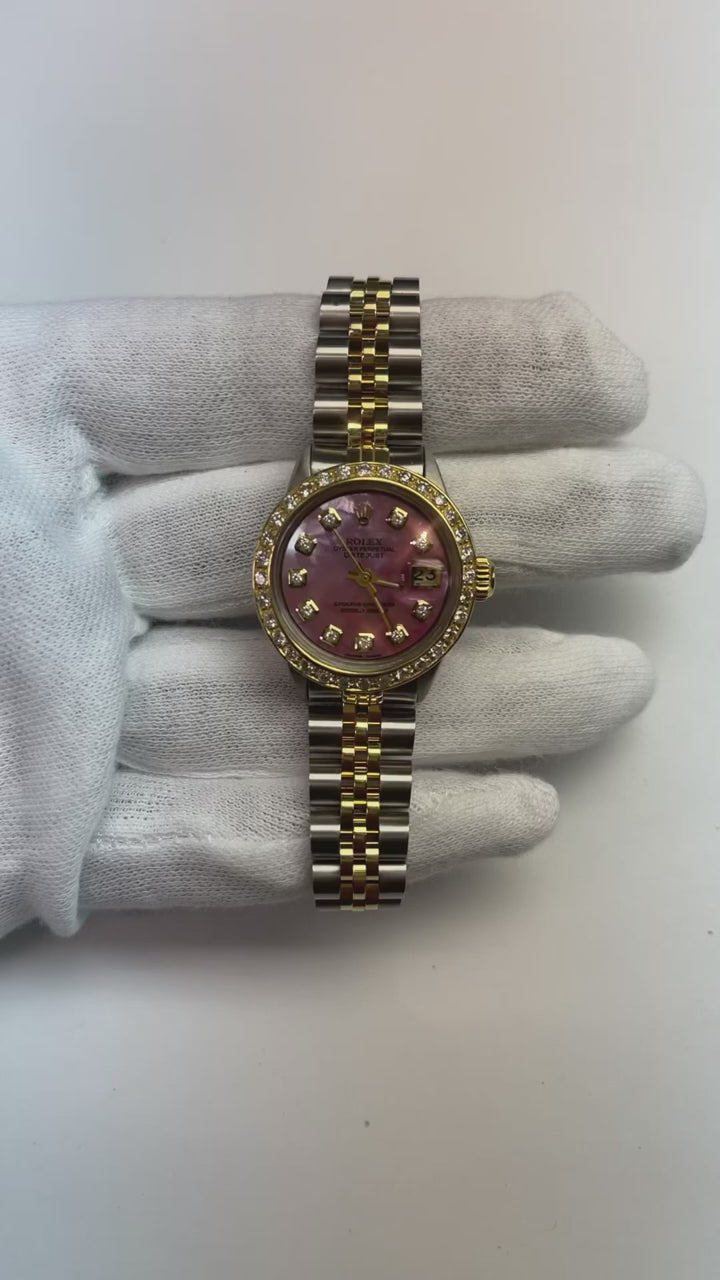 Rolex Femme Cadran Diamant Bordeaux Lunette Acier Inoxydable et Bracelet Jubilee Or