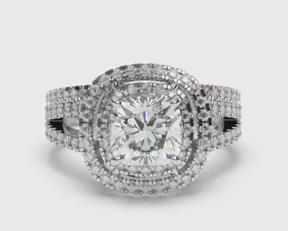 Taille coussin avec bague en diamant rond 3.50 carats en or blanc 14 carats