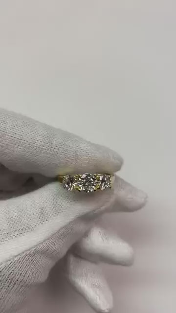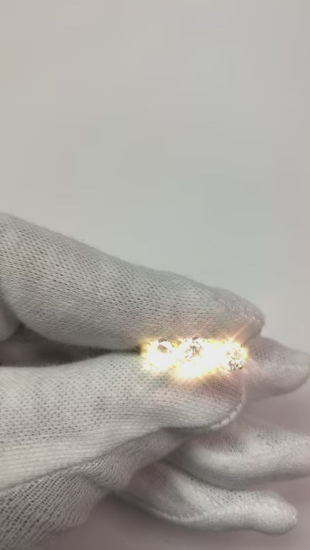 Spécifications de la pierre : Il y a un diamant rond central d'env. 1 carat (Diamètre env. 6.3 mm) et 2 petits diamants ronds sur les côtés env. 1 carat. Des diamants naturels extraits de la terre.